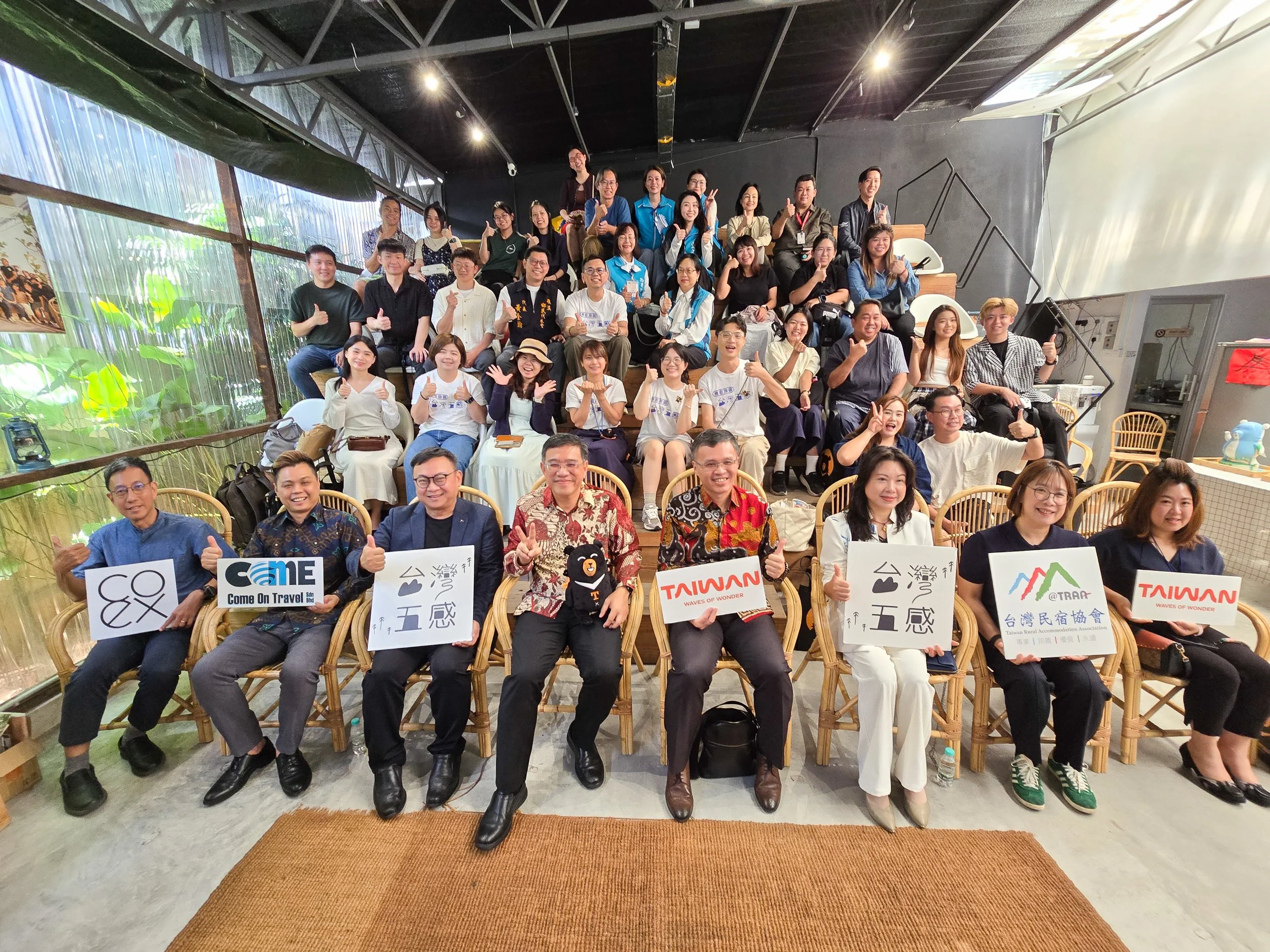 周五,「台湾五感 4:疗愈旅图」在槟城COEX进行启动礼。出席者包括台湾观光署驻吉隆坡办事处周士弼主任、无界行销所兼《马可波罗》杂志萧宏隆社长、槟州旅游及创意经济行政议员黄汉伟、台湾民宿协会理事长赖淑薇、槟州台商会长黄惠铃、华航槟城分公司营业经理邱美彬、Come On Travel 旅行社执行董事何佳安,以及COEX创办人梅志雄。